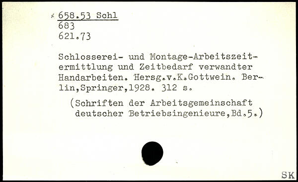 Schlosserei- und Montage-Arbeitszeit- , ermittlung und Zeitbedarf verwandter Handarbeiten. Hersg.v.K.Gottwein.