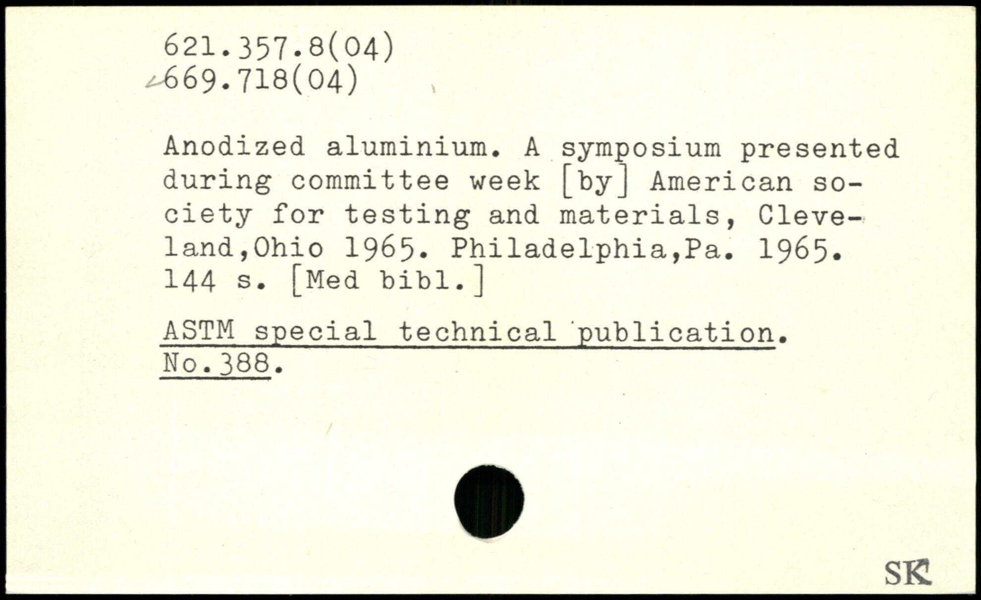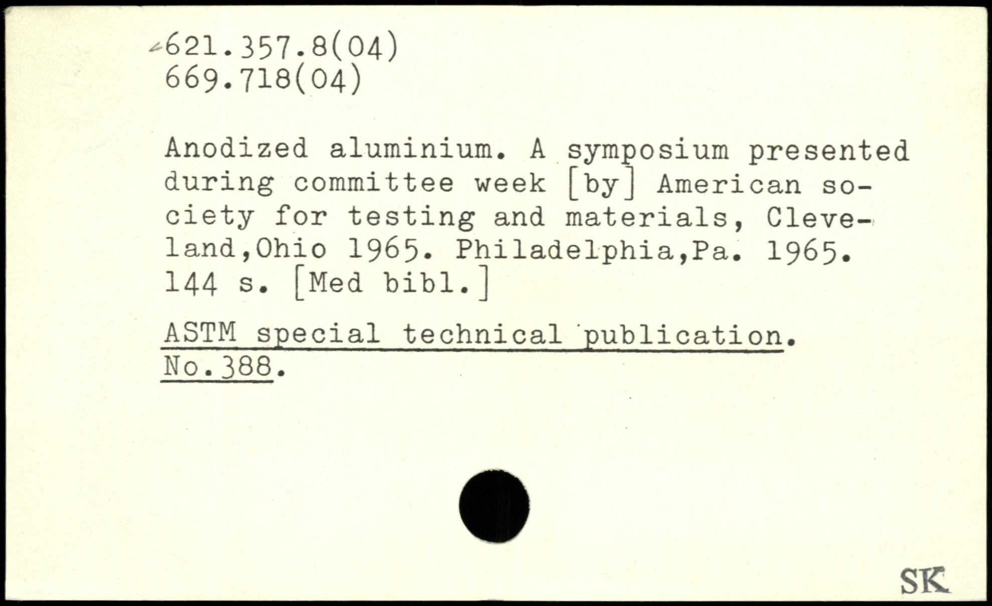 Anodized, aluminium. A symposium presented during committee week [by] American society for testing and materials