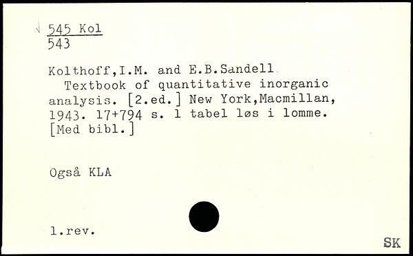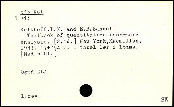 Forfatter: I.M. Kolthoff, E.B. Sandell