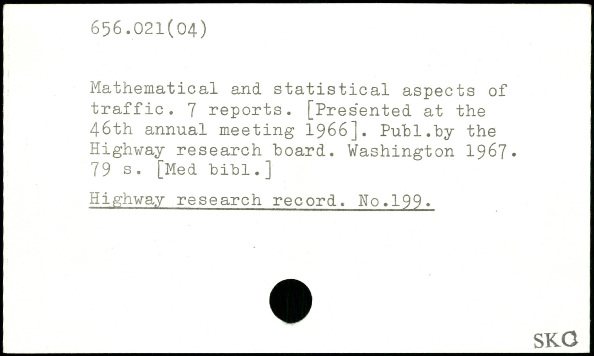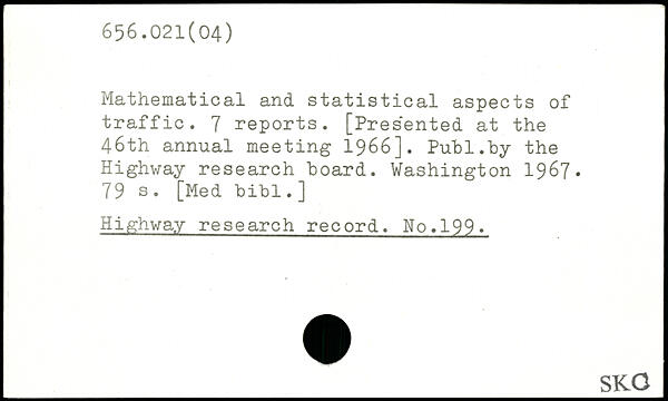 Mathematical and statistical aspects of traffic. 7 reports. [Pres'ented at the 46th annual meeting 1966].