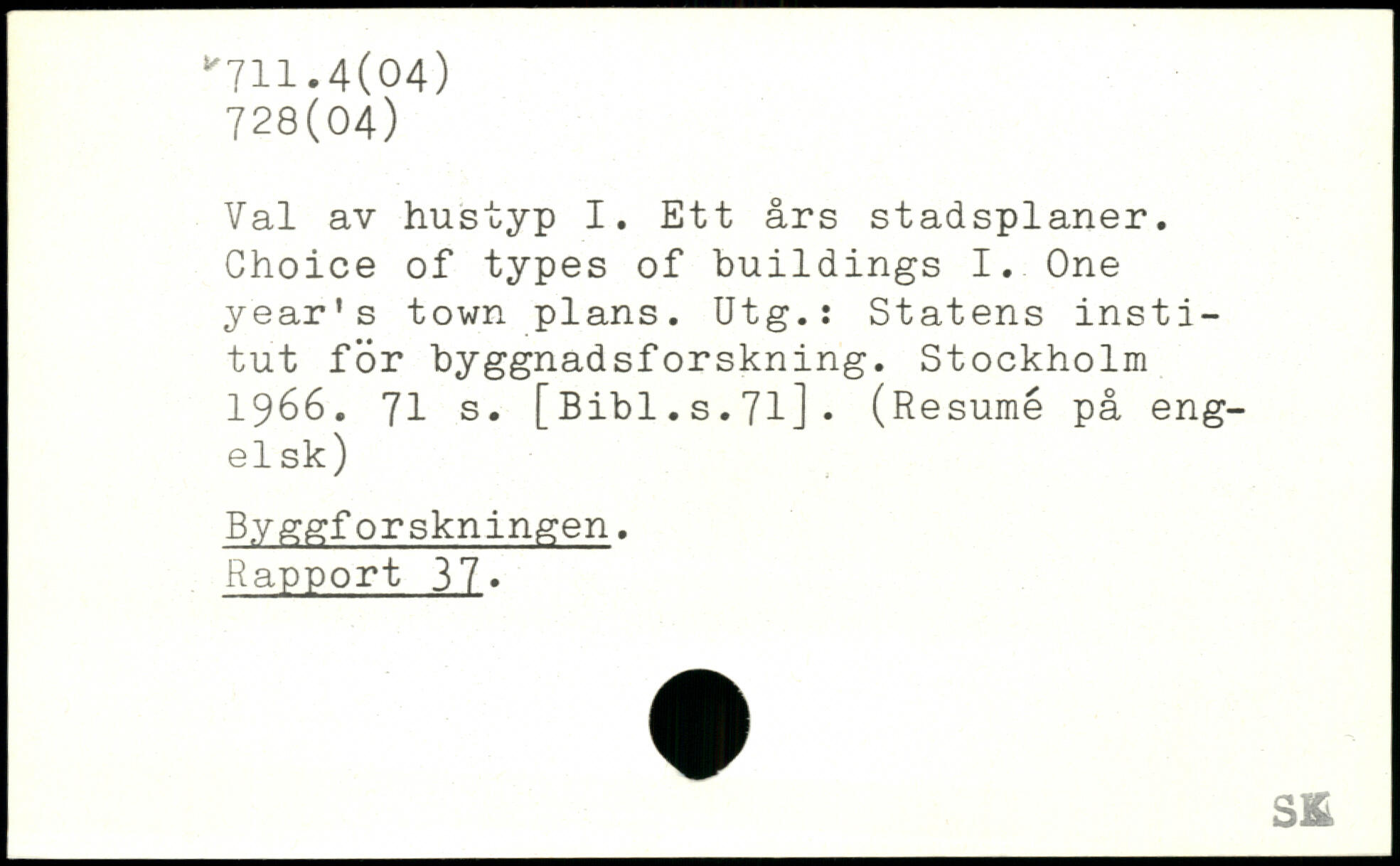Val av hustyp I. Ett års stadsplaner. Choice of types of buildings I. One year’s town plans. Utg.: Statens institut för byggnadsforskning.