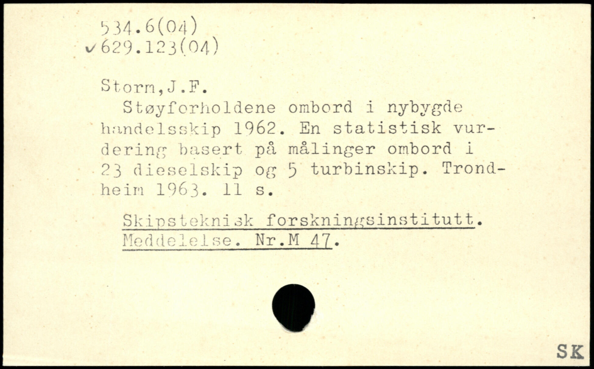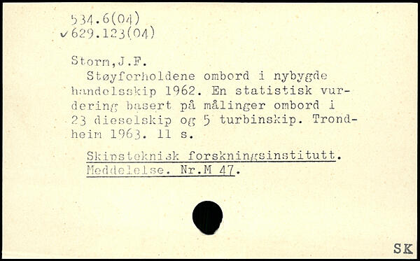 Støjforholdene ombord i nybygde bandelsskip 1962. En statistisk vurdering basert på målinger ombord i 23 dieselskip og 6 turbinskip.