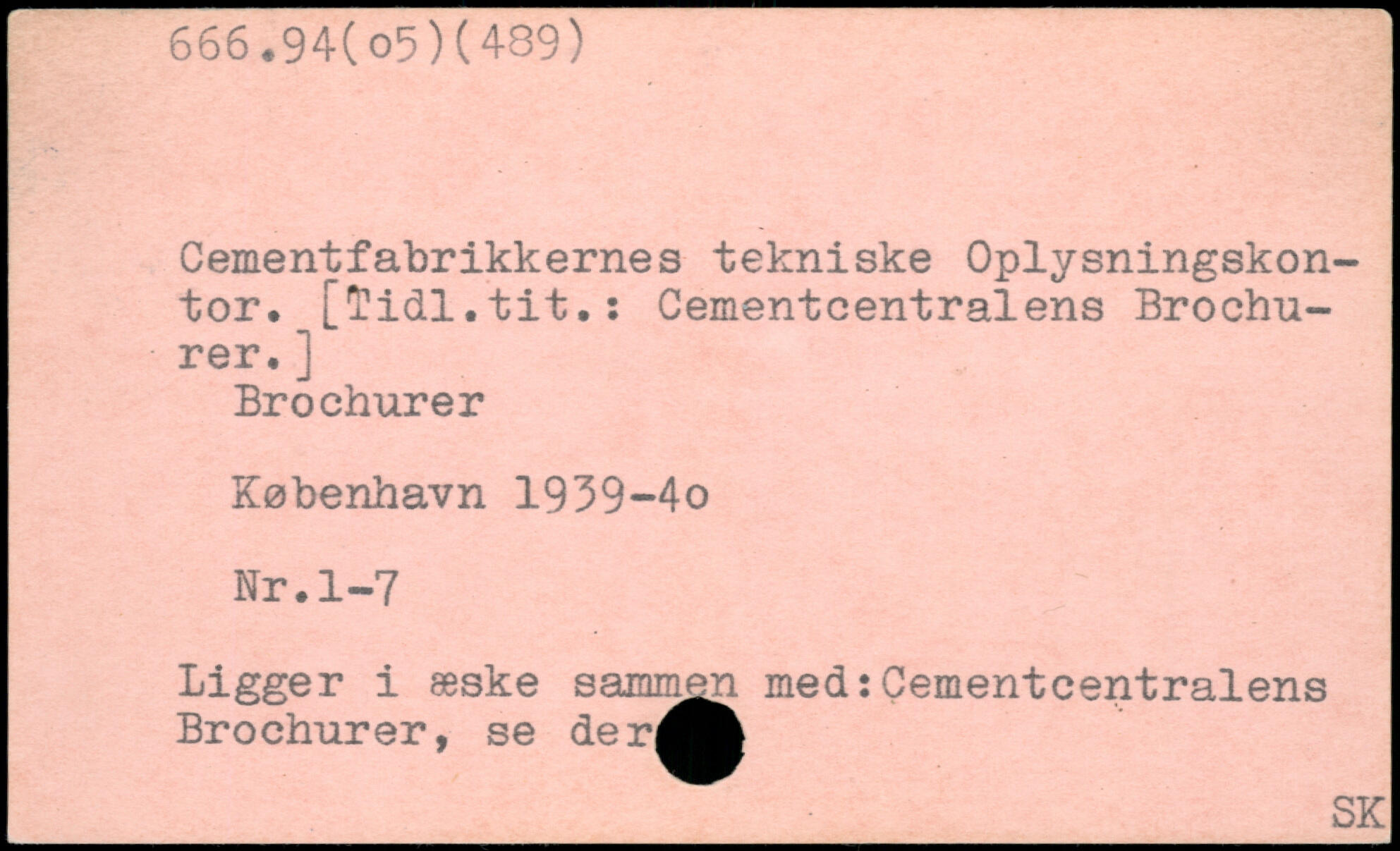 Cementfabrikkernes tekniske Oplysningskontor. [lidi.tit.: Cementcentralens Brochurer. ] Brochurer