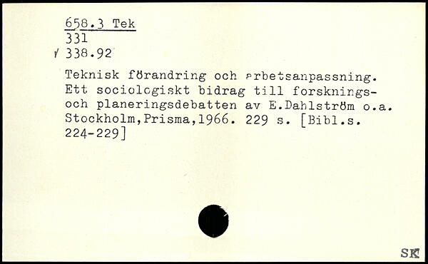 Teknisk förändring och prbetsanpassning. Ett sociologiskt bidrag till forsknings-och planeringsdebatten av E.Dahlström o.a.