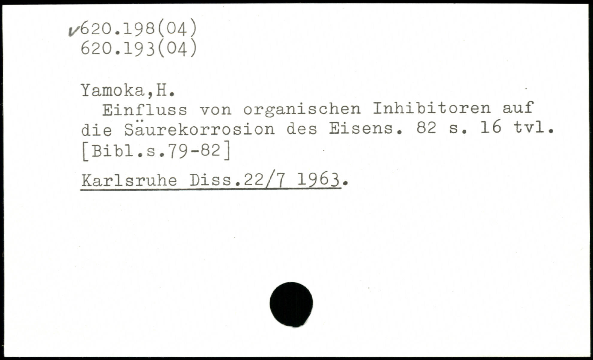 Einfluss von organischen Inhibitoren auf die Säurekorrosion des Eisens.