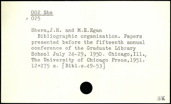 Bibliographic organization. Papers presented before the fifteenth annual conference of the Graduate Library School July 24-29, 1950, Chicago,111., The University of Chicago Press,1951