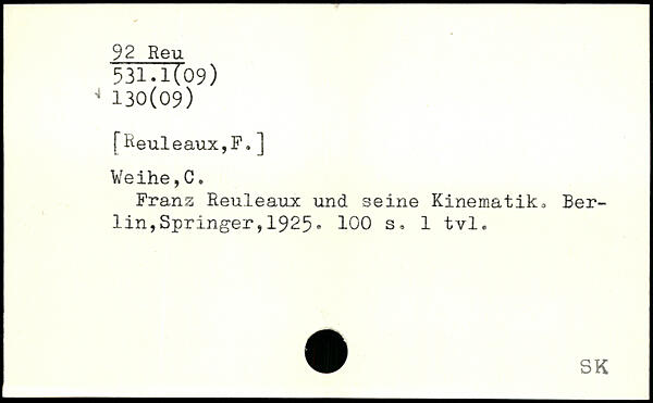 Sted: Reuleaux und seine Kinematik., Berlin