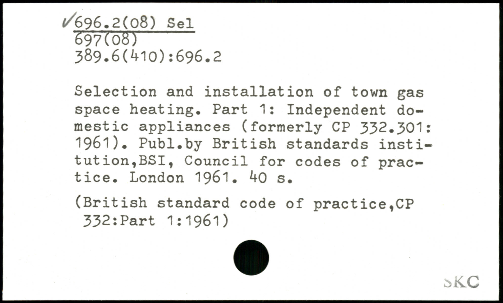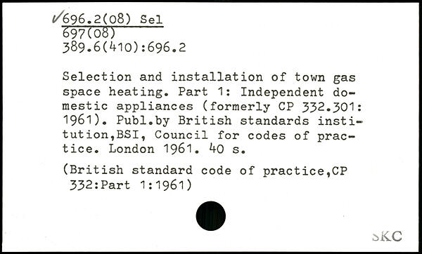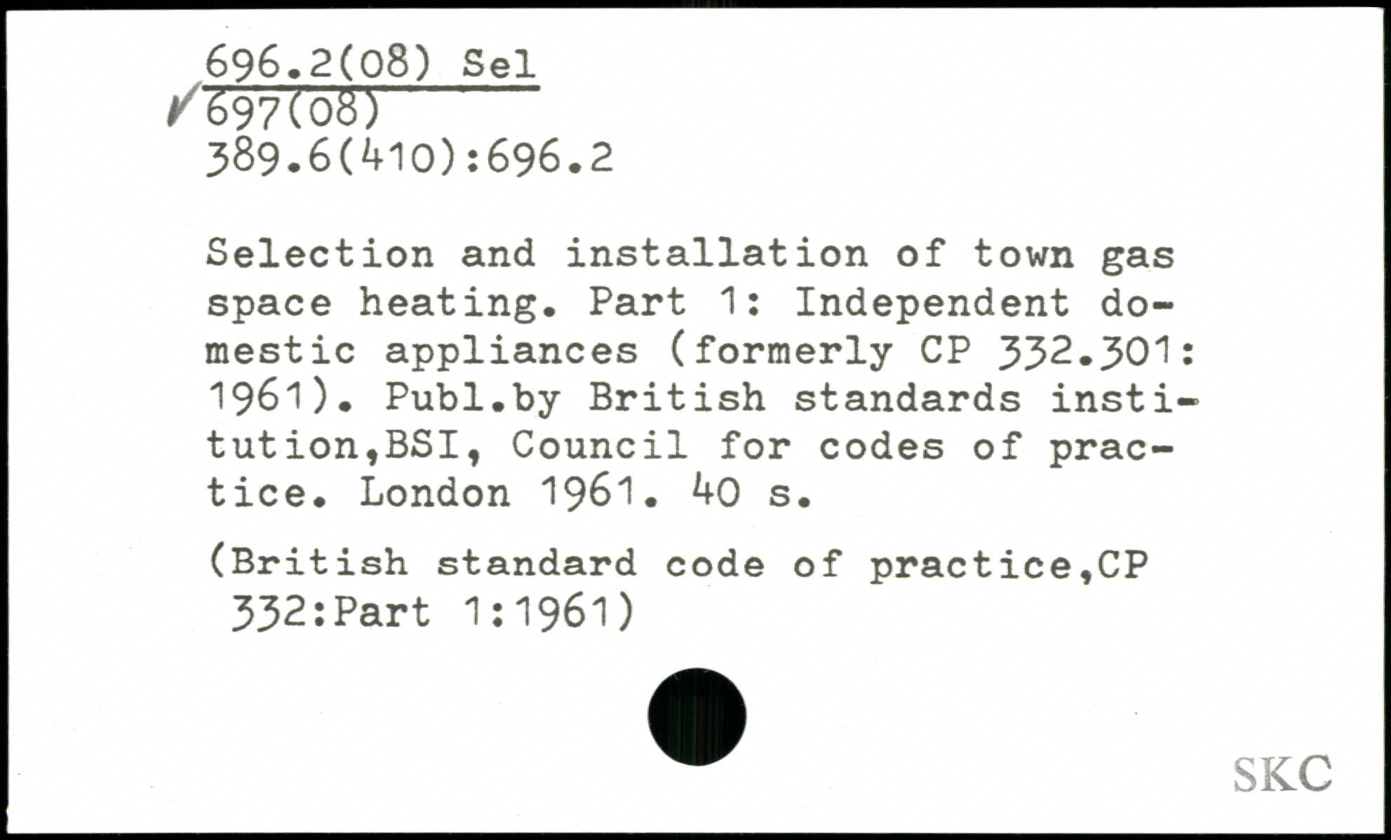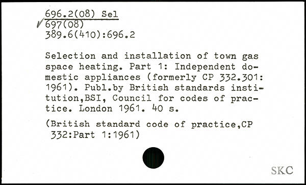 Selection and installation of town gas space heating. Part 1: Independent domestic appliances (formerly CP 332.301: 1961).