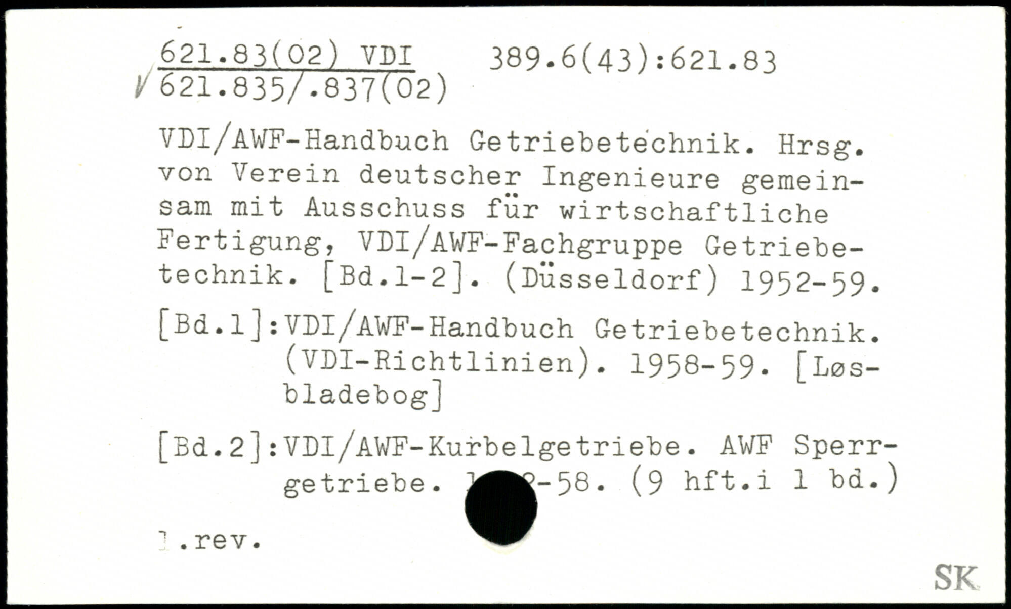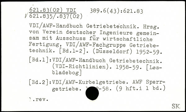 VDl/AWF-Handbuch Getriebetechnik. Hrsg, von Verein deutscher Ingenieure gemeinsam mit Ausschuss für wirtschaftliche Fertigung, VDl/AWF-Fachgruppe Getriebetechnik. [