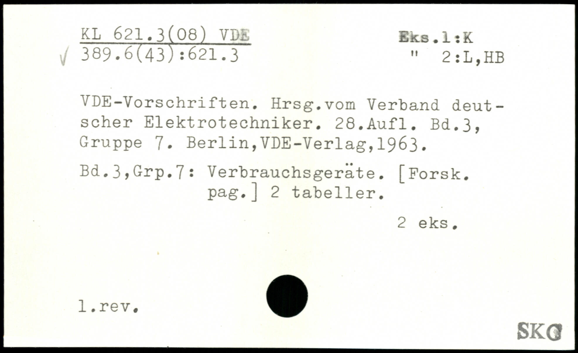 VDE-Vorschriften. Hrsg.vom Verband deutscher Elektrotechniker.