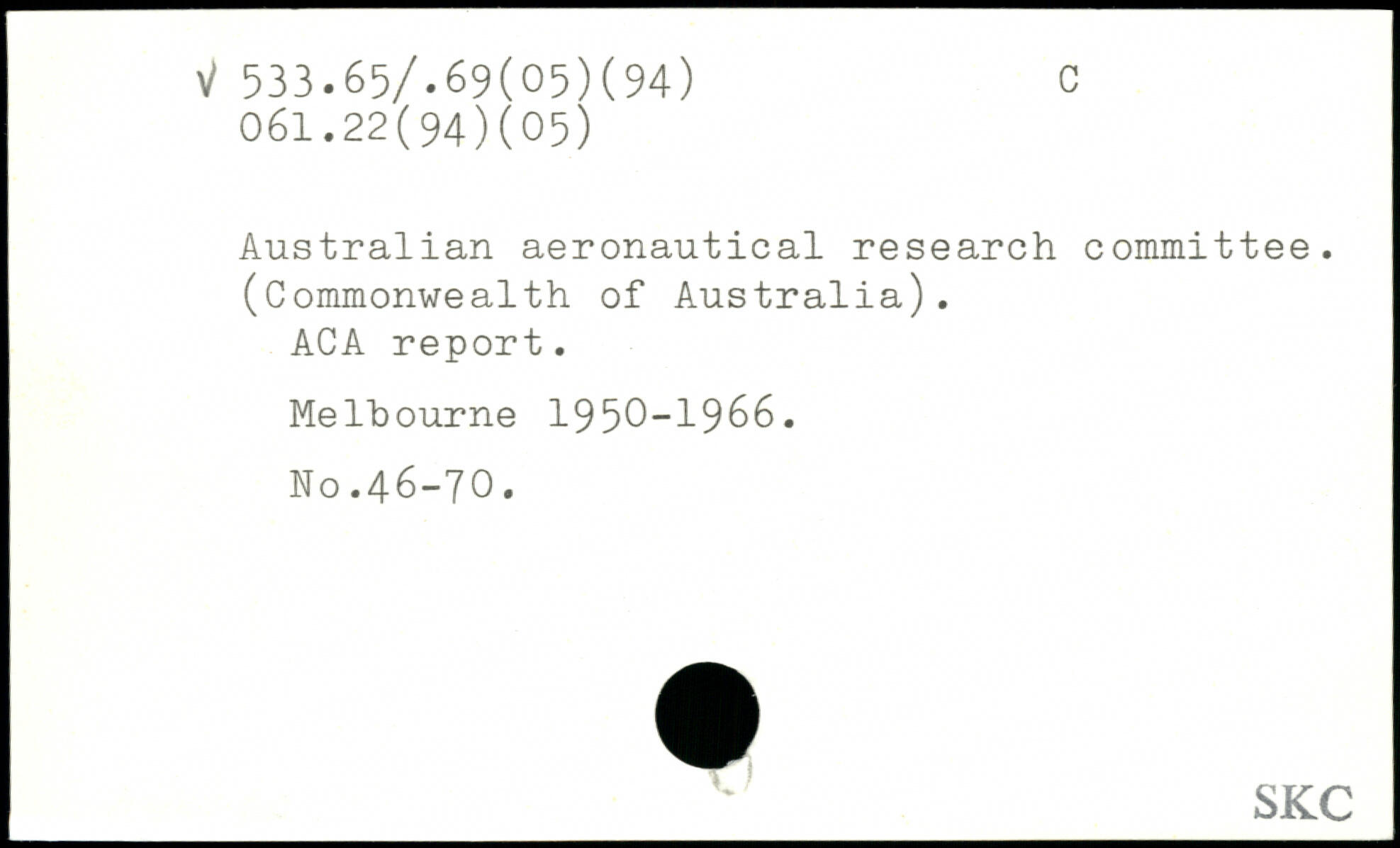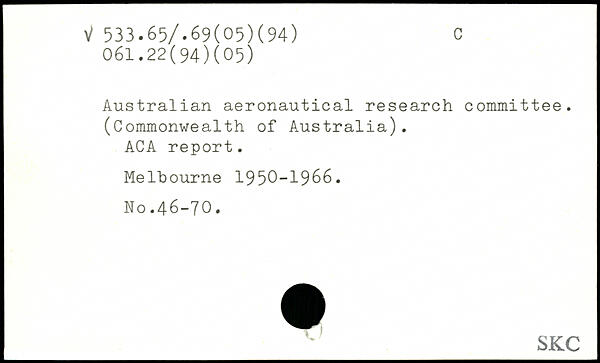 Australian aeronautical research committee. (Commonwealth of Australia). ACA report. Melbourne 1950-1966. No.46-70.
