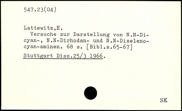 Versuche zur Darstellung von N.N-Di-cyan-, N.N-Dirhodan- und N.N-Diseleno-cyan-aminen.