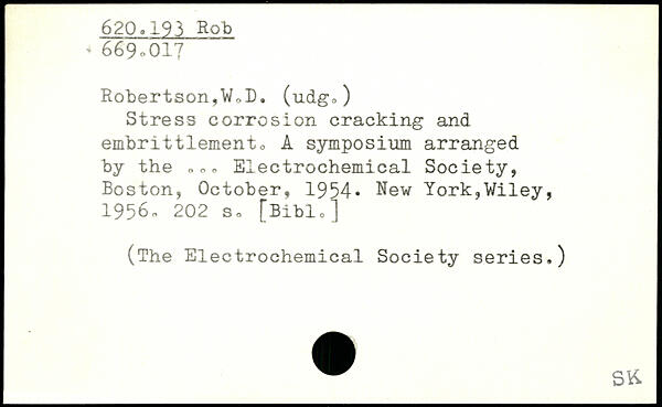 Stress corrosion cracking and embrittlement, A symposium arranged by the ,,