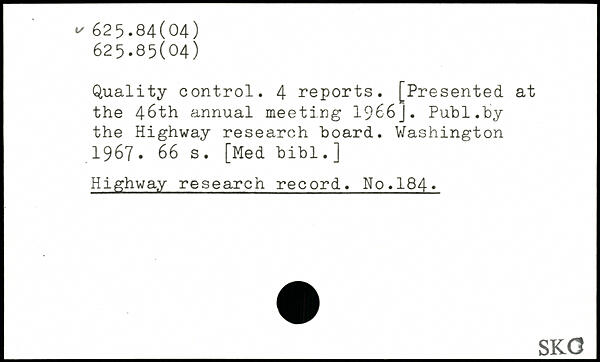 Quality control. 4 reports. [Presented at the 46th annual meeting 1966J.