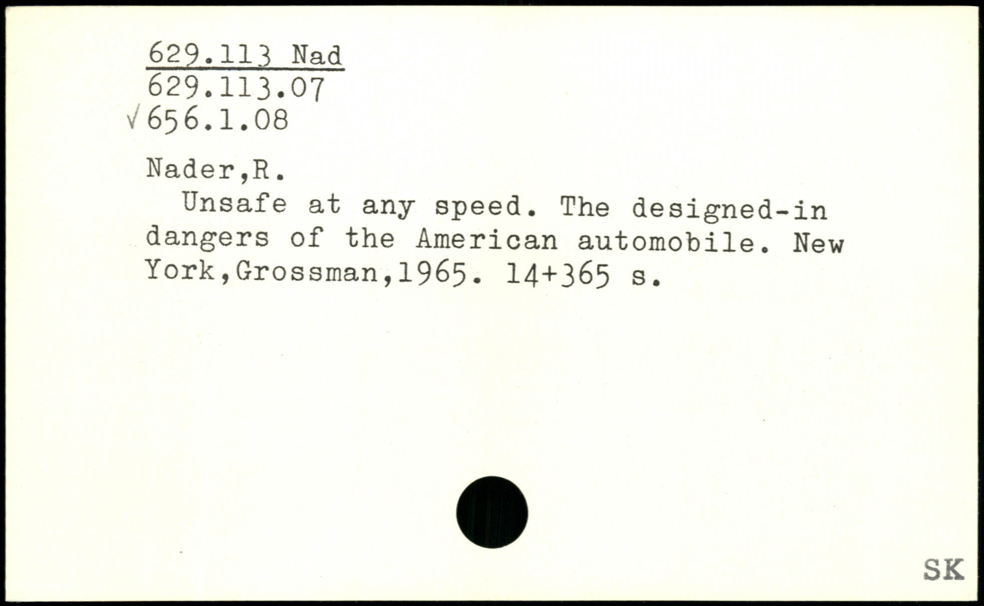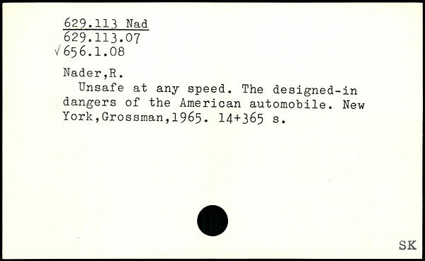 Unsafe at any speed. The designed-in dangers of the American automobile.