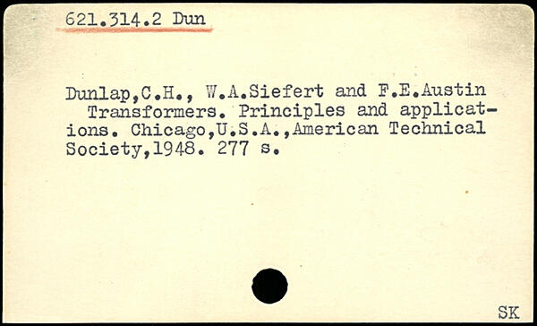 Dunlap,C.H., W.A.Siefert and F.E.Austin Transformers. Principles and applications.