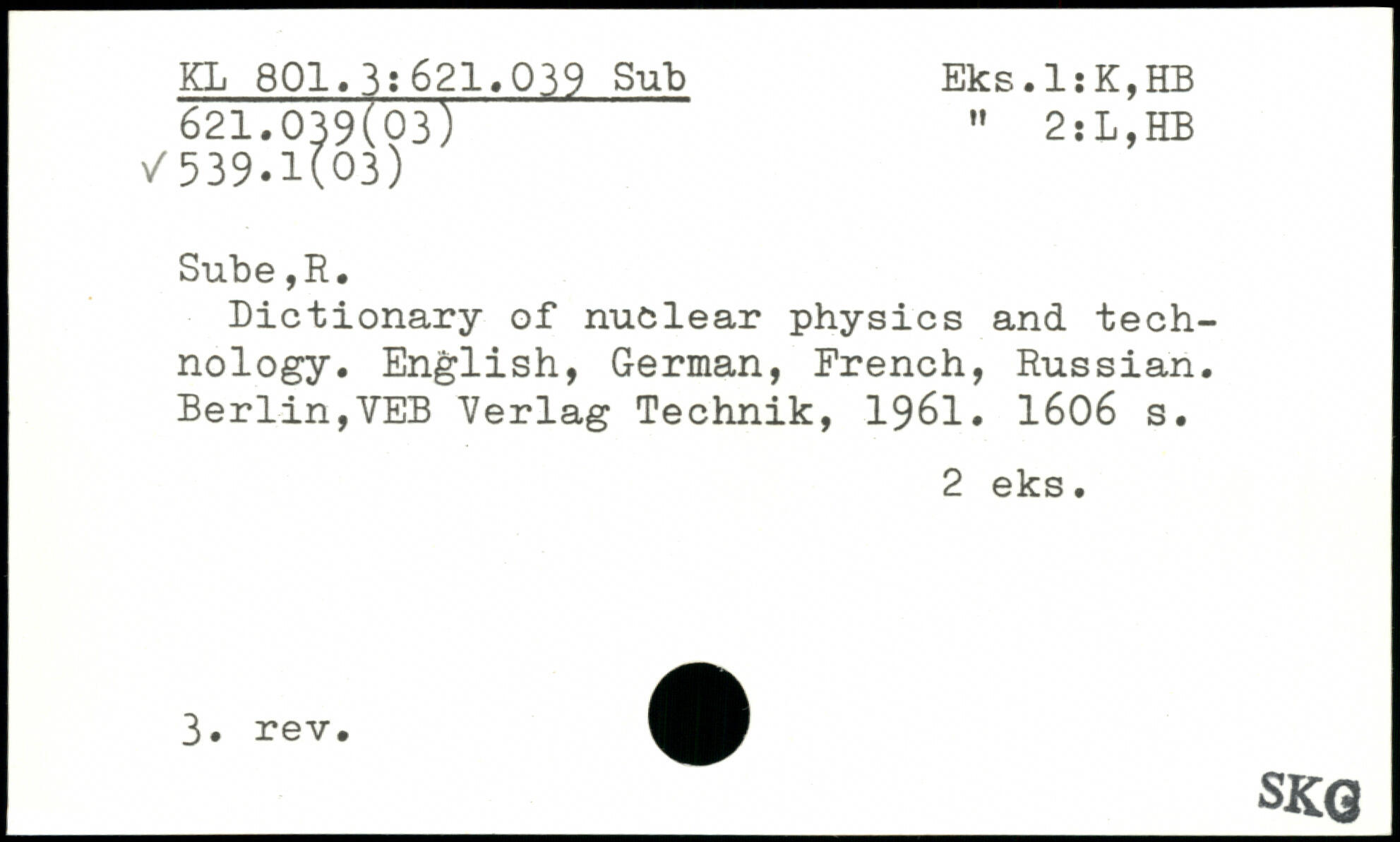 Dictionary of nuclear physics and technology. English, German, French, Russian. Berlin,VEB "Verlag Technik, 1961.