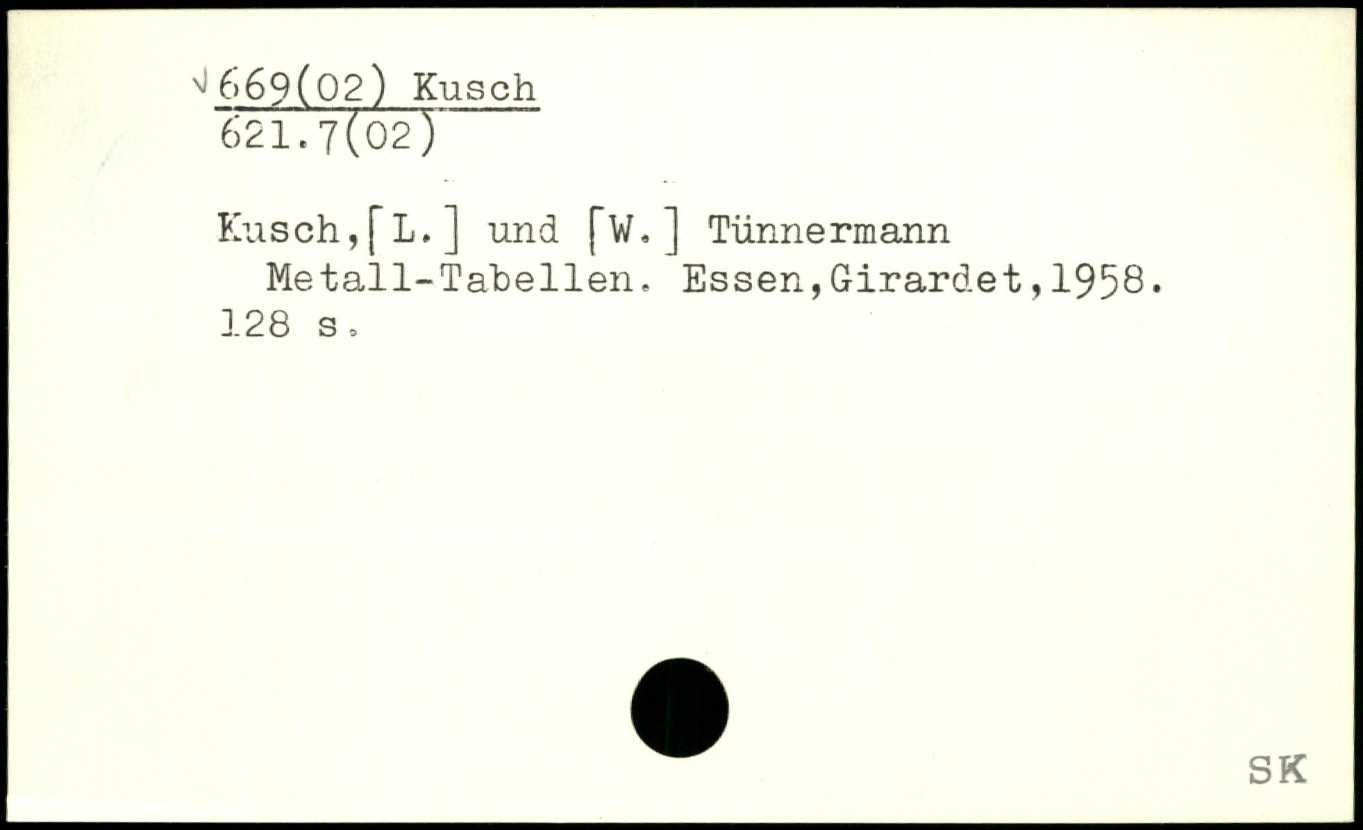 Kusch,[L.] und [W.] Tünnermann Metall-Tabellen.