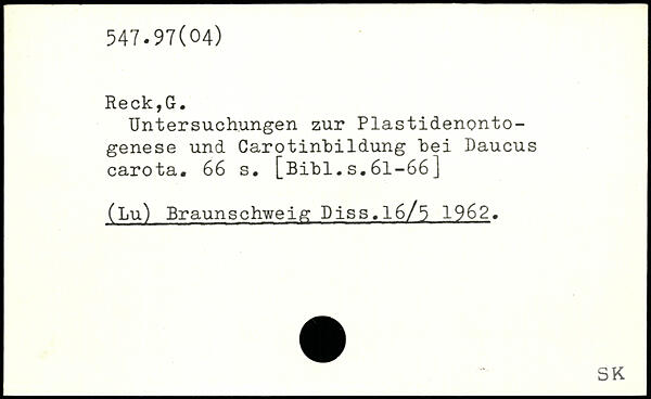 Untersuchungen zur Plastidenonto-genese und Carotinhildung hei Daucus carota.