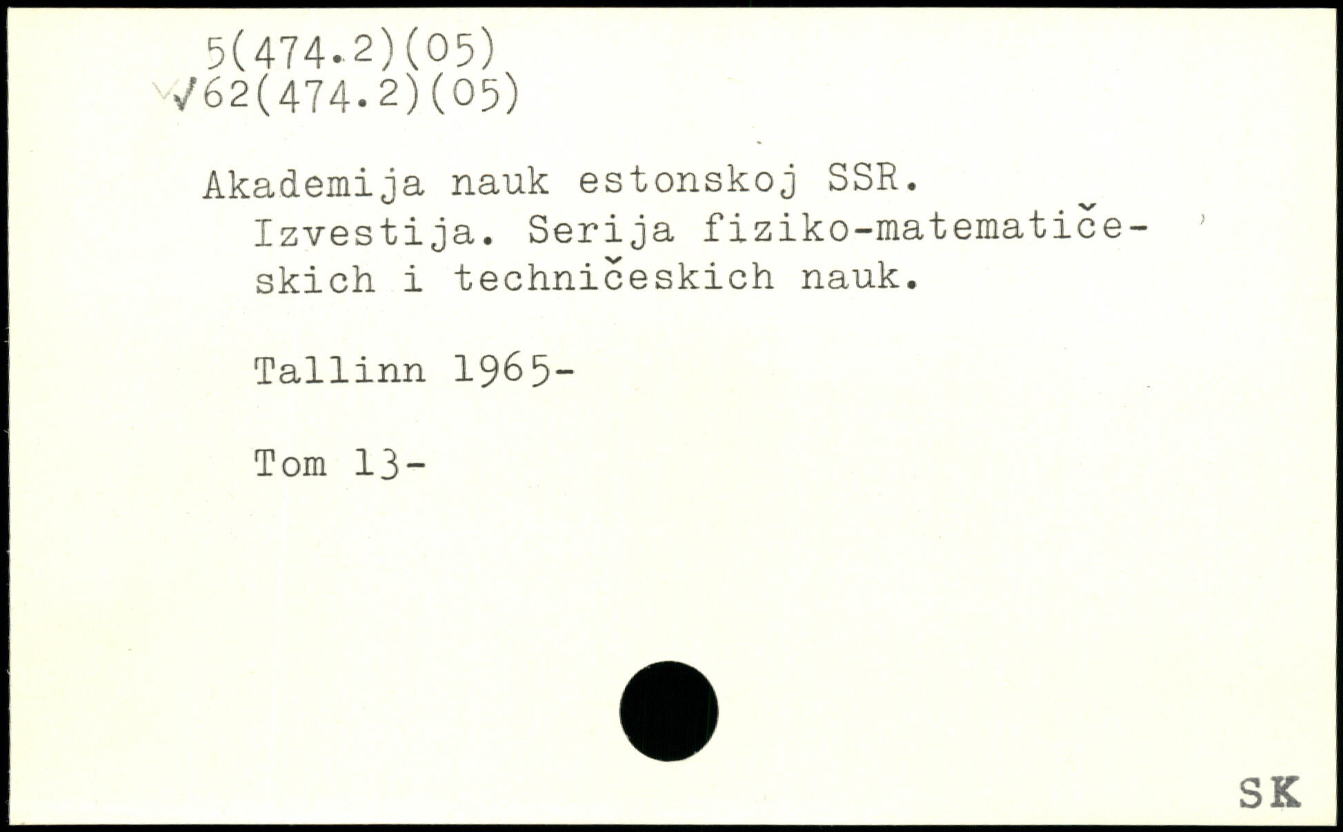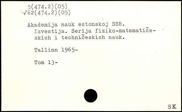 Akademija nauk estonskoj SSR. Izvestija. Serija fiziko-matematice-skich i techniceskich nauk. Tallinn 1965- T om 13 -