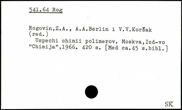 Uspechi chimii polimerov. Moskva,Izd-vo '.ChimijaM,1966. 42O s. [Med ca.