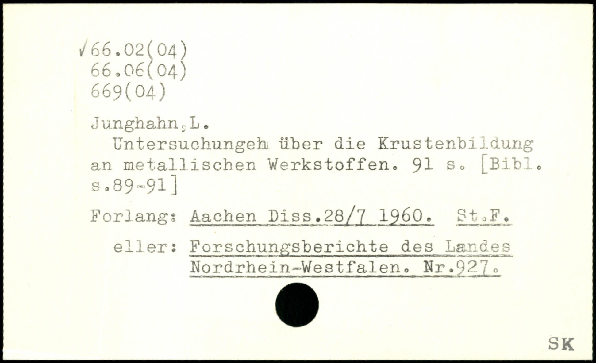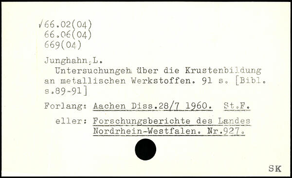 Untersuchungeh über die Krustenbildung an metallischen Werkstoffen.