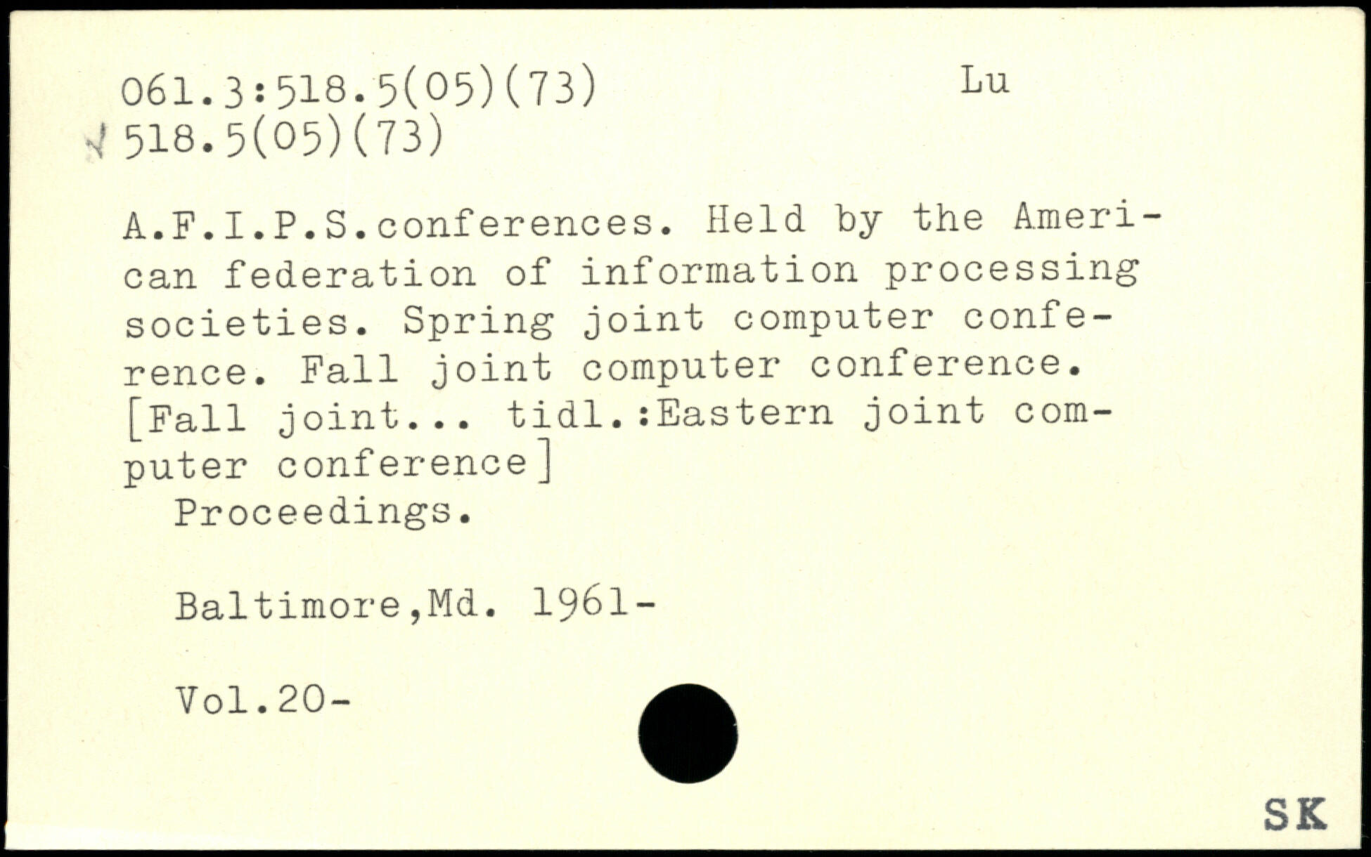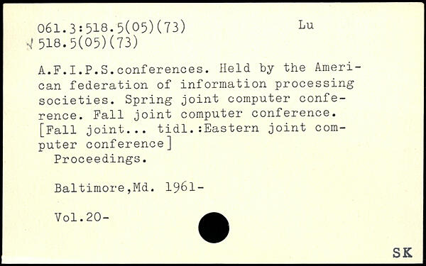 A.F.I.P.S.conferences. Held by the American federation of information processing societies. Spring joint computer conference. Fall joint computer conference.