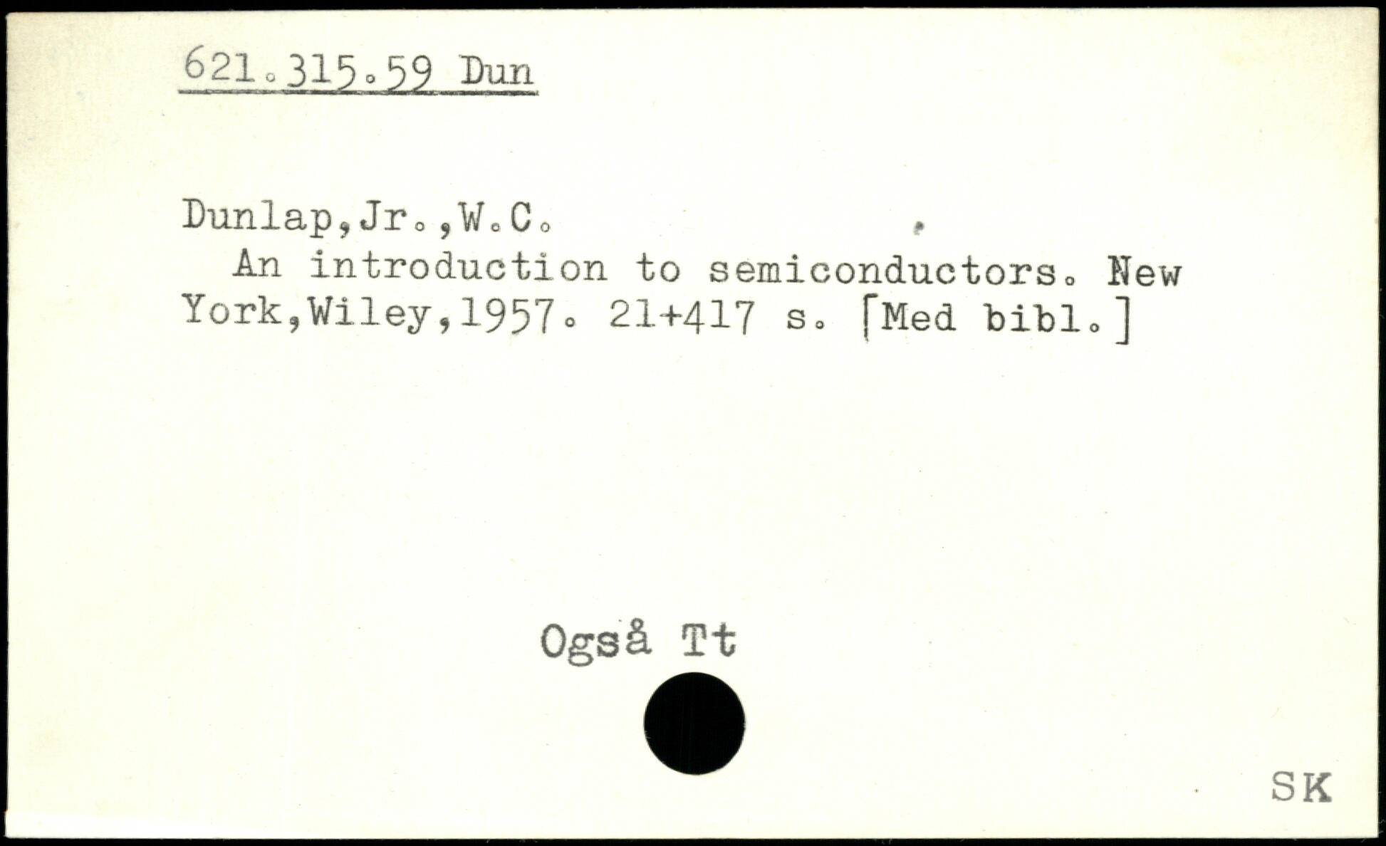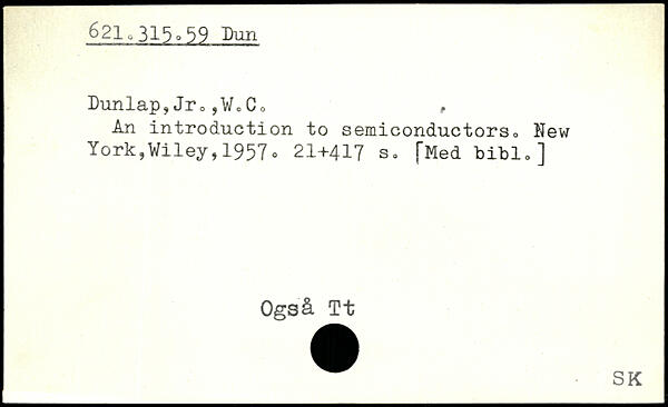 Dunlap,Jr0,Vo Co , An introduction to semiconductors.