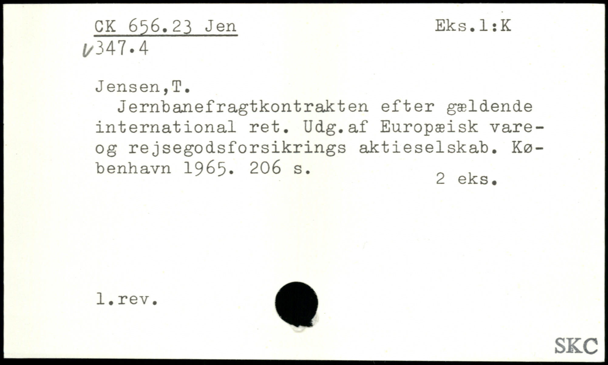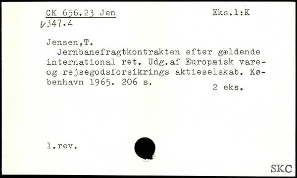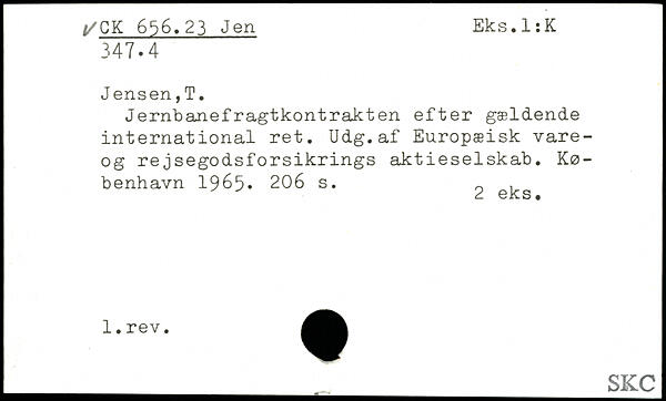 Jernbanefragtkontrakten efter gældende international ret. Udg.af Europæisk vare-og rejsegodsforsikrings aktieselskab.