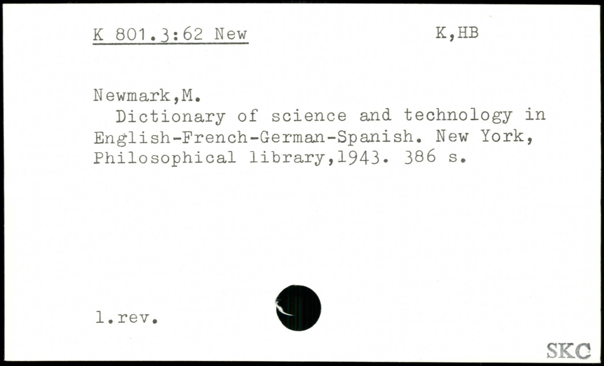 Dictionary of science and technology in English-French-German-Spanish.