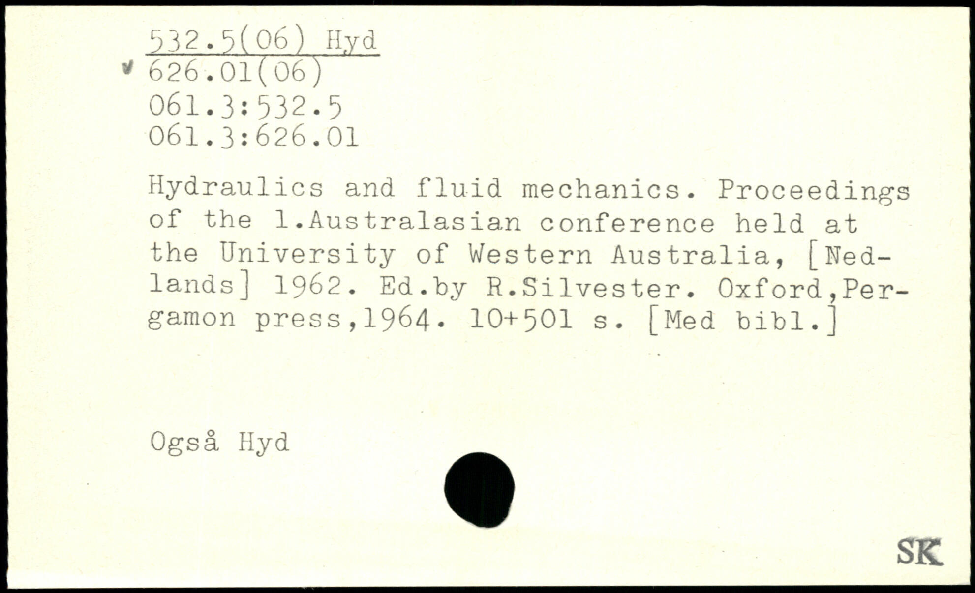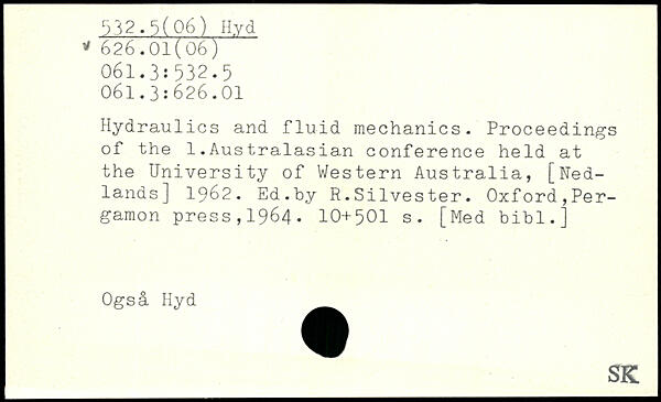 Hydraulics and fluid mechanics. Proceedings of the 1.Australasian conference held at the University of Western Australia, [Ned-lands] 1962. Ed.by R.Silvester.