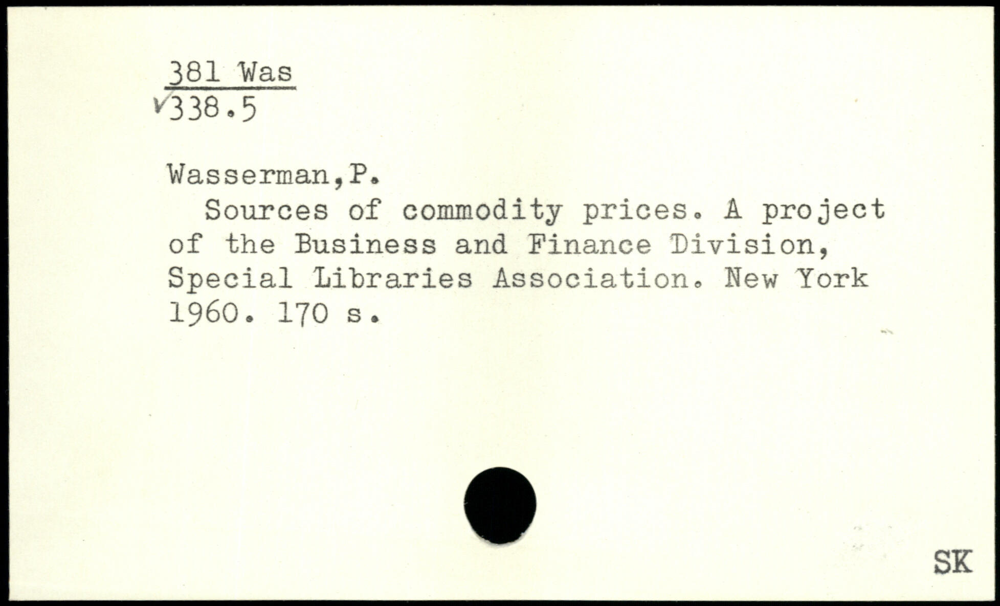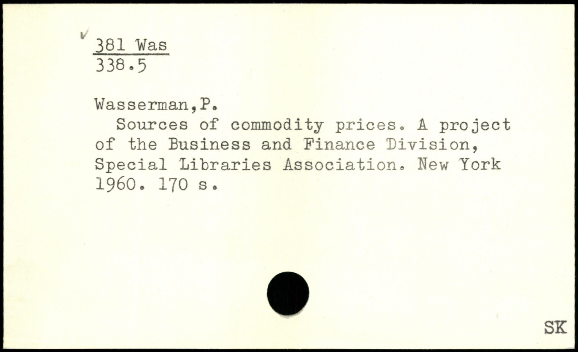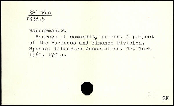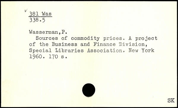 Sources of commodity prices. A project of the Business and Finance Division, Special Libraries Association.