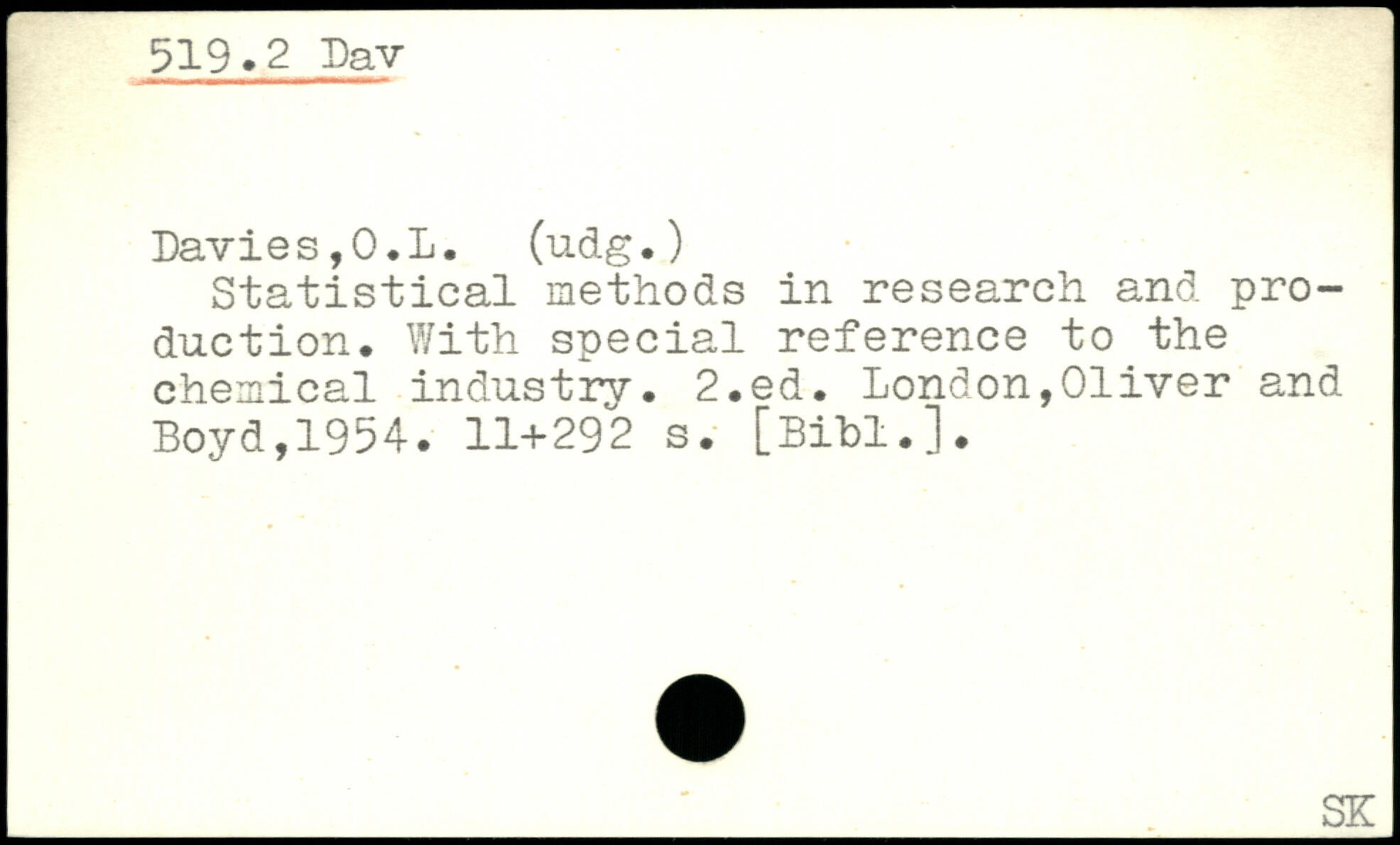 Statistical methods in research and production. With special reference to the chemical industry.