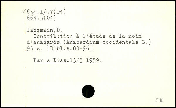 Contribution à l'étude de la noix d'anacarde (Anacardium occidentale L.)
