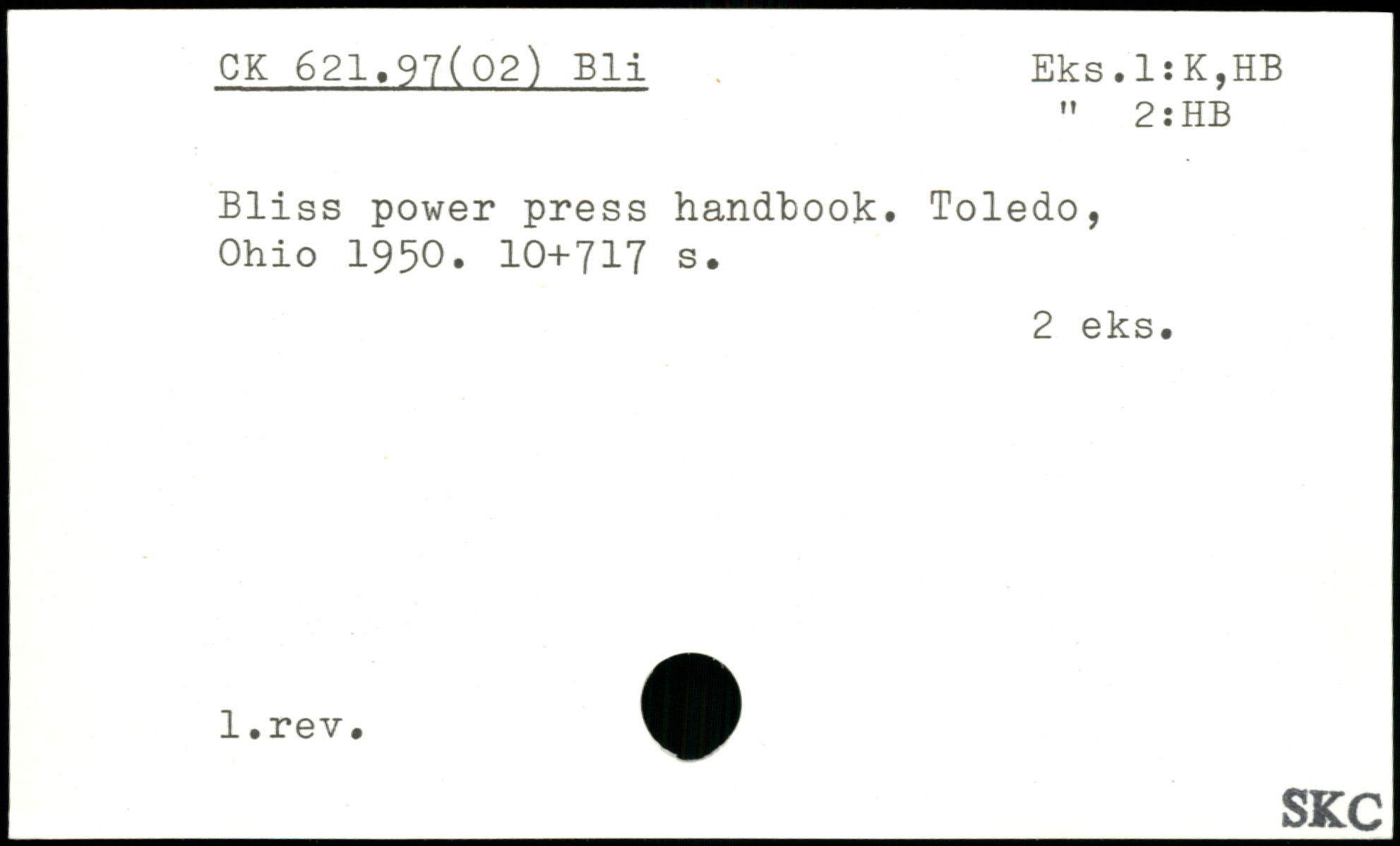 Bliss power press handbook. Toledo, Ohio 1950.