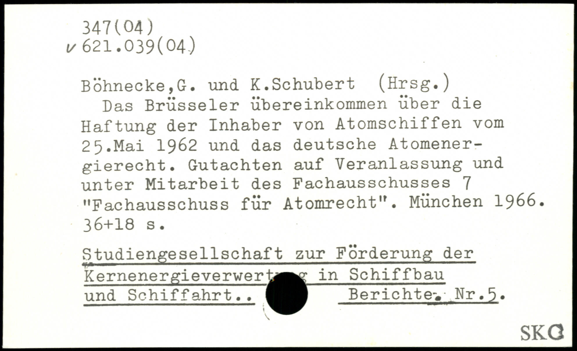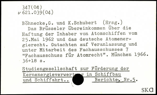 Bas Brüsseler Übereinkommen über die Haftung der Inhaber von Atomschiffen vom 25.Mai 1962 und das deutsche Atomenergierecht. Gutachten auf Veranlassung und unter Mitarbeit des Fachausschusses 7 "Fachausschuss für Atomrecht".