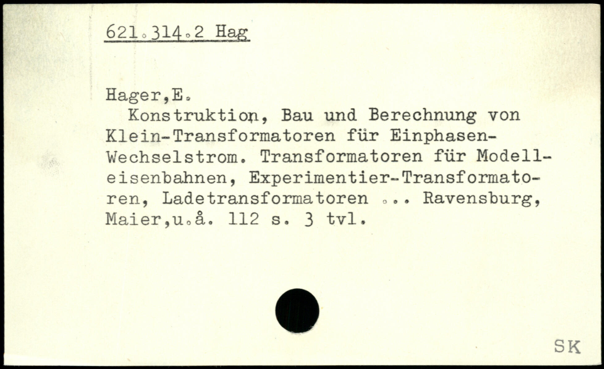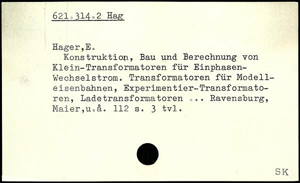 Konstruktion, Bau und Berechnung von Klein-Transformatoren für Einphasen-Vechselstrom. Transformatoren für Modelleisenbahnen, Experimentier-Transformatoren, Ladetransformatoren ,,. . Ravensburg, Maier,Uoå.