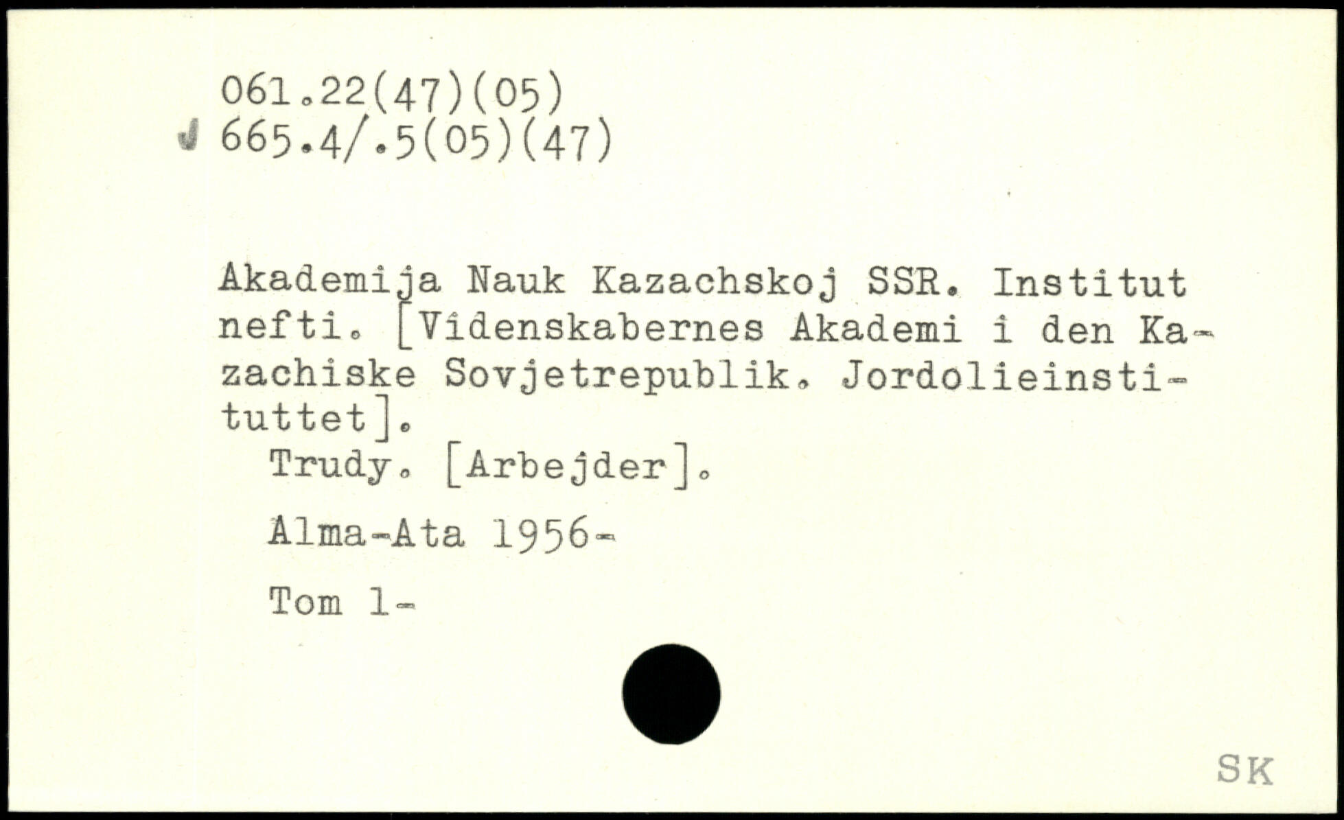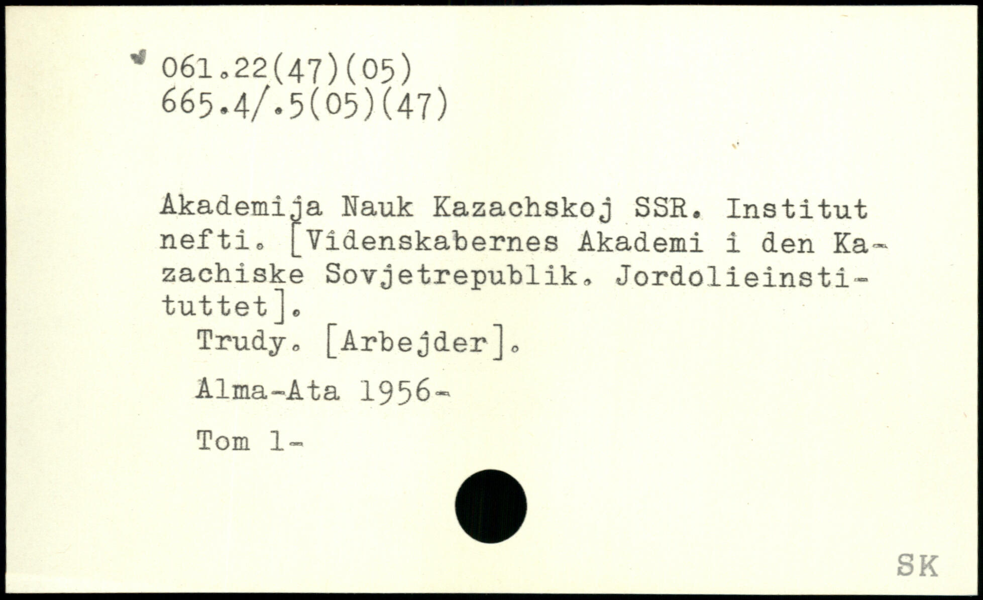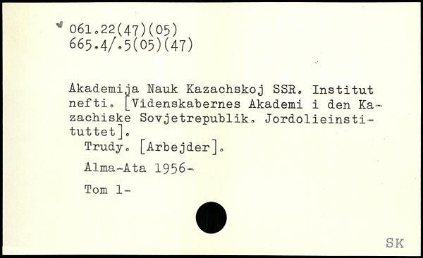 Akademija Nauk Kazachskoj SSR. Institut neftio [Videnskabernes Akademi i den Ka~ zachiske Sovjetrepublik,, Jordolieinsti-tuttet]0 Trudy, [Arbejder],, Alma-Ata 1956-Tom 1-