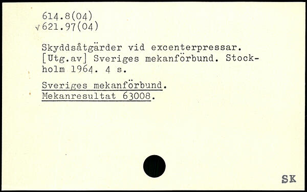 Skyddsåtgärder vid excenterpressar. [Utg.avJ Sveriges mekanforbund.