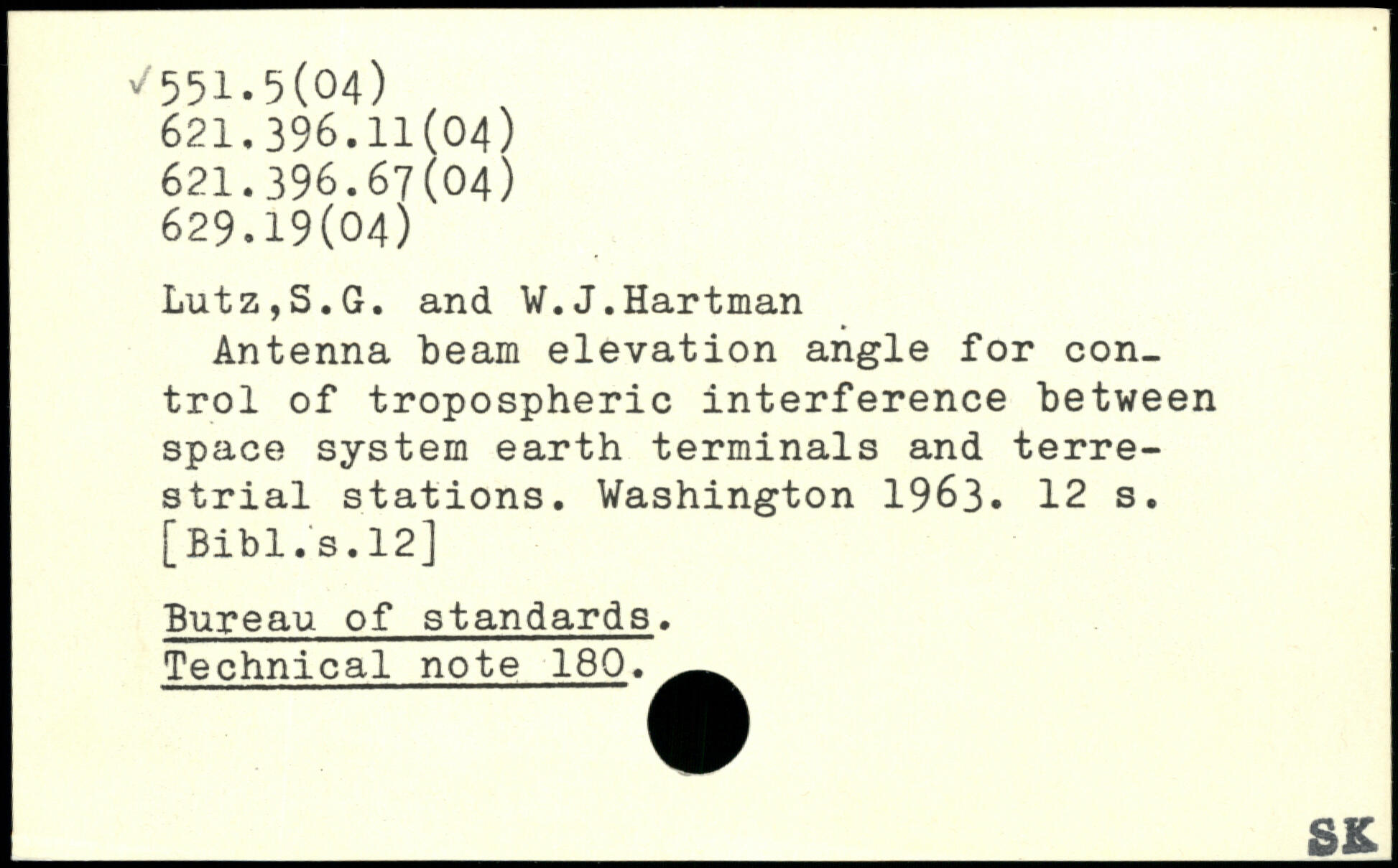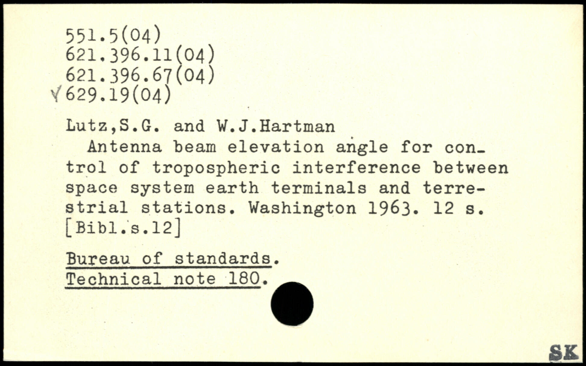 Antenna beam elevation angle for control of tropospheric interference between space system earth terminals and terrestrial stations.
