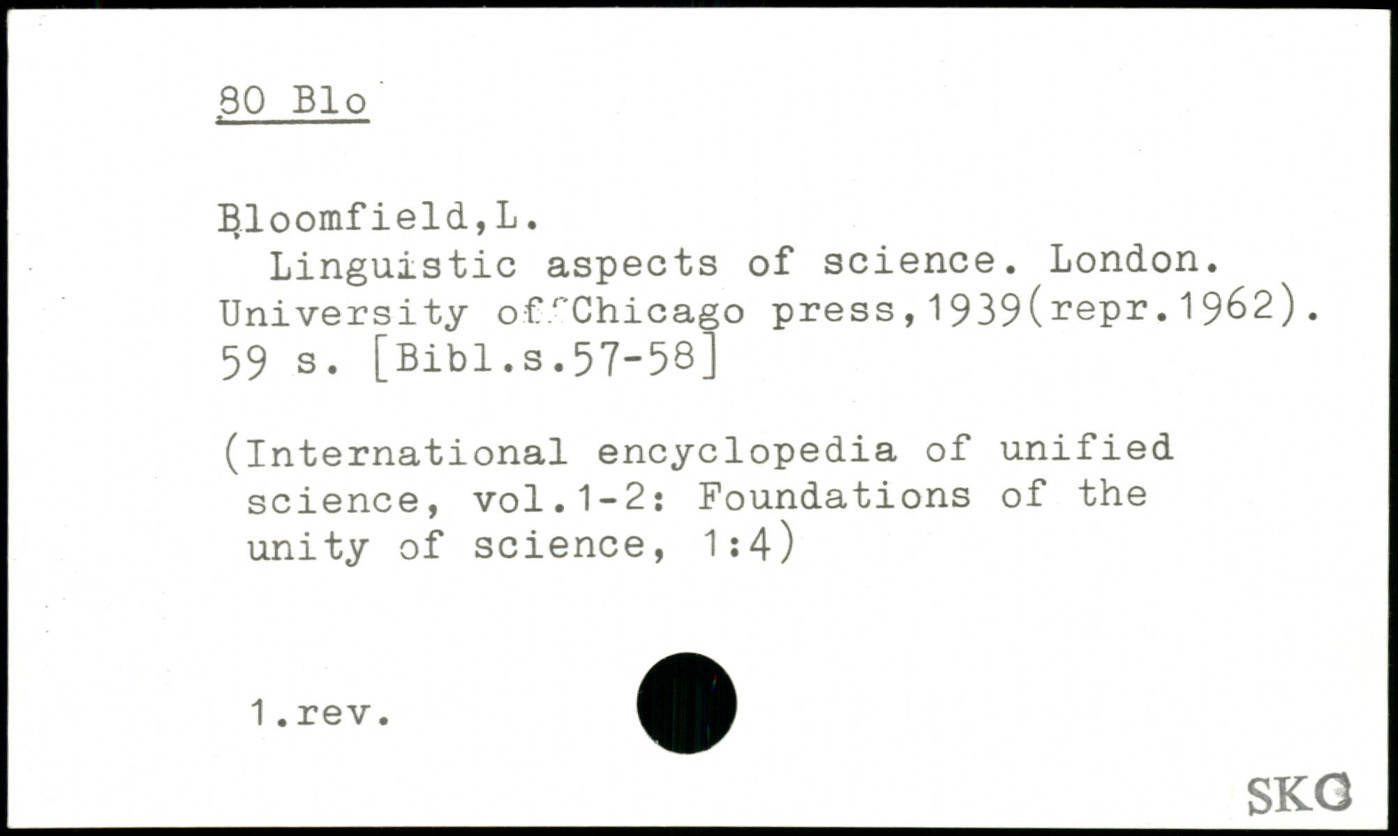 Linguistic aspects of science. London. University offChicago press,1939(repr.19&2).
