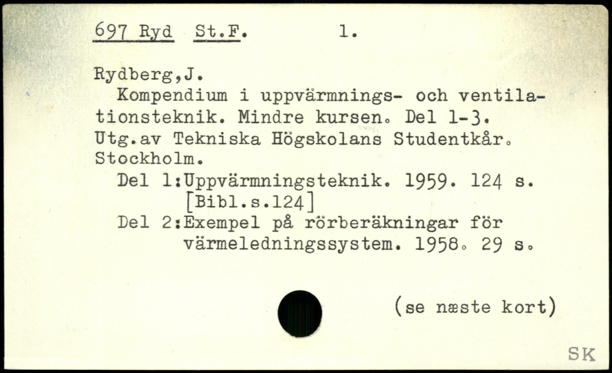 Kompendium i uppvärmnings- och ventilationsteknik. Mindre kursen, Del 1-3, Utg.av Tekniska Högskolans Studentkår, Stockholm. Del 1:Uppvärmningsteknik. 1959.