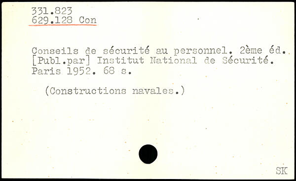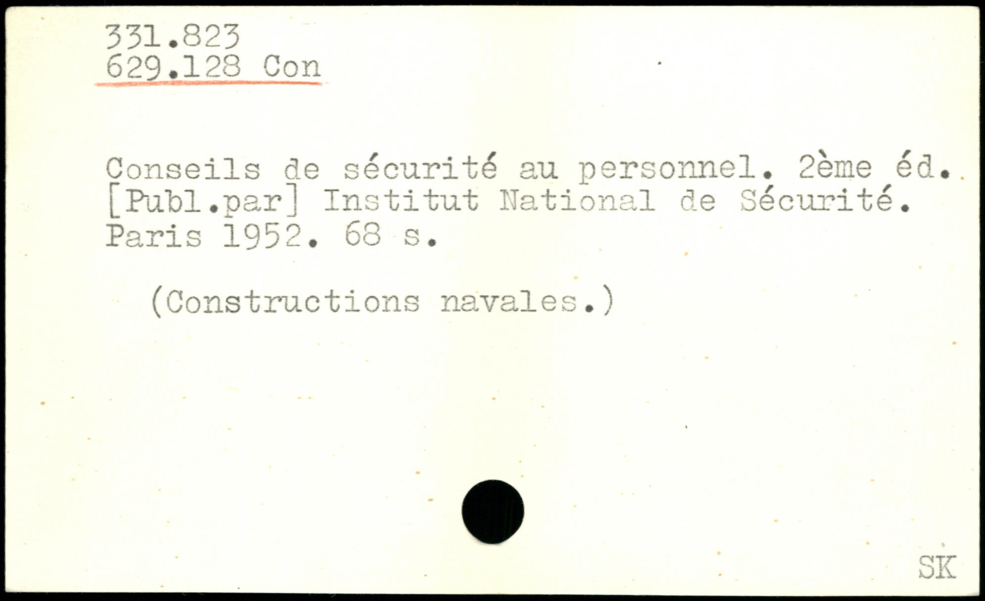 Conseils de sécurité au personnel, 2ème éd.. [Publ.par] Institut National de Sécurité.