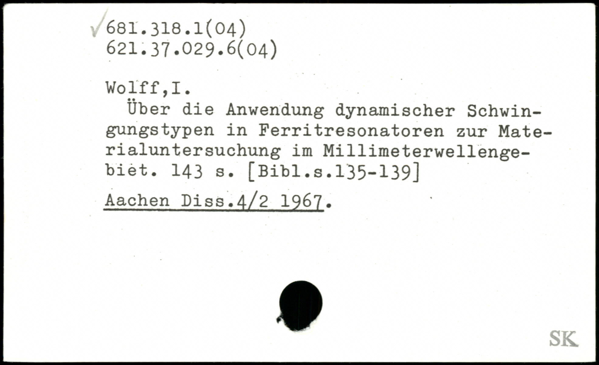 Uber die Anwendung dynamischer Schwingungstypen in Ferritresonatoren zur Materialuntersuchung im M1111meterwellengebiet.
