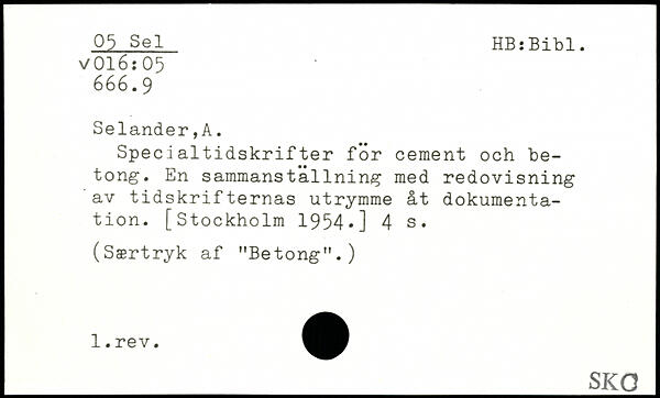 Specialtidskrifter för cement och betong. En sammanstallning med redovisning av tidskrifternas utrymme åt dokumentation.
