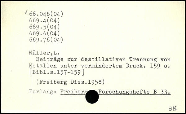 Beiträge zur destillativen Trennung von Metallen unter vermindertem Druck