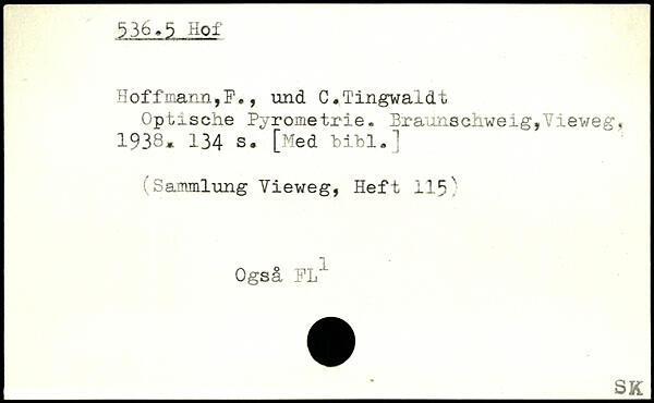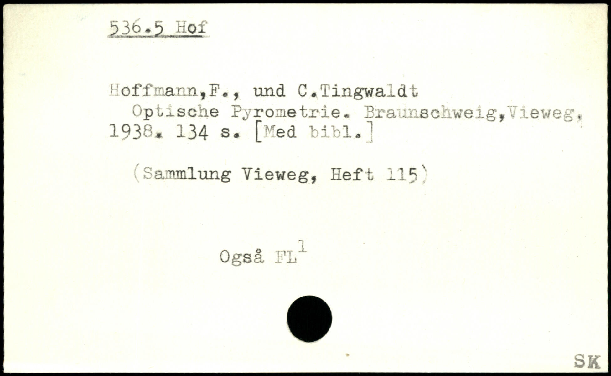 Hoffmann,F., und C.Tingwaldt Optische Pyrometrie.