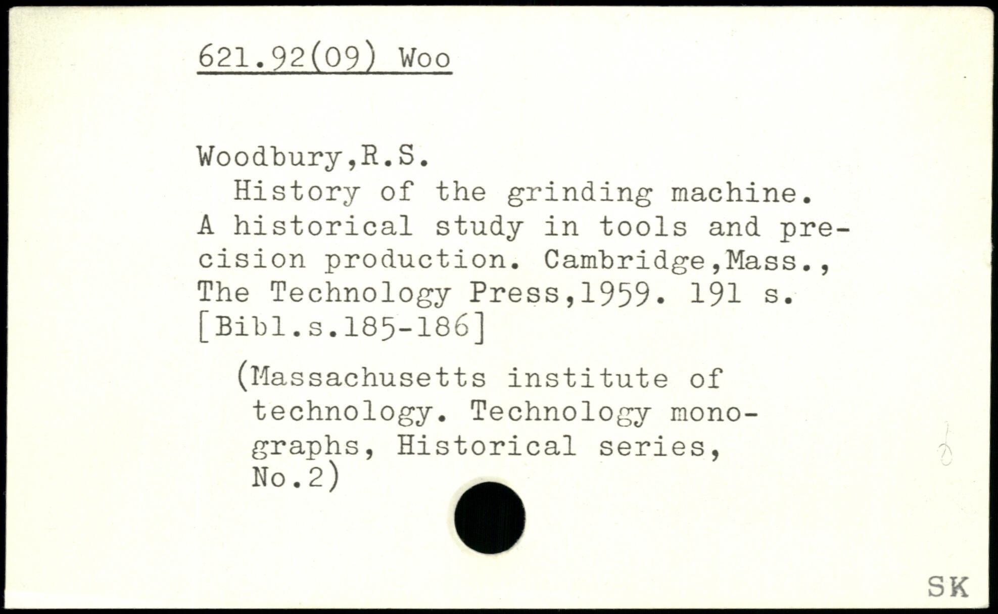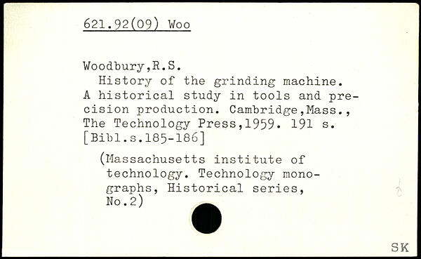 History of the grinding machine. A historical study in tools and precision production.