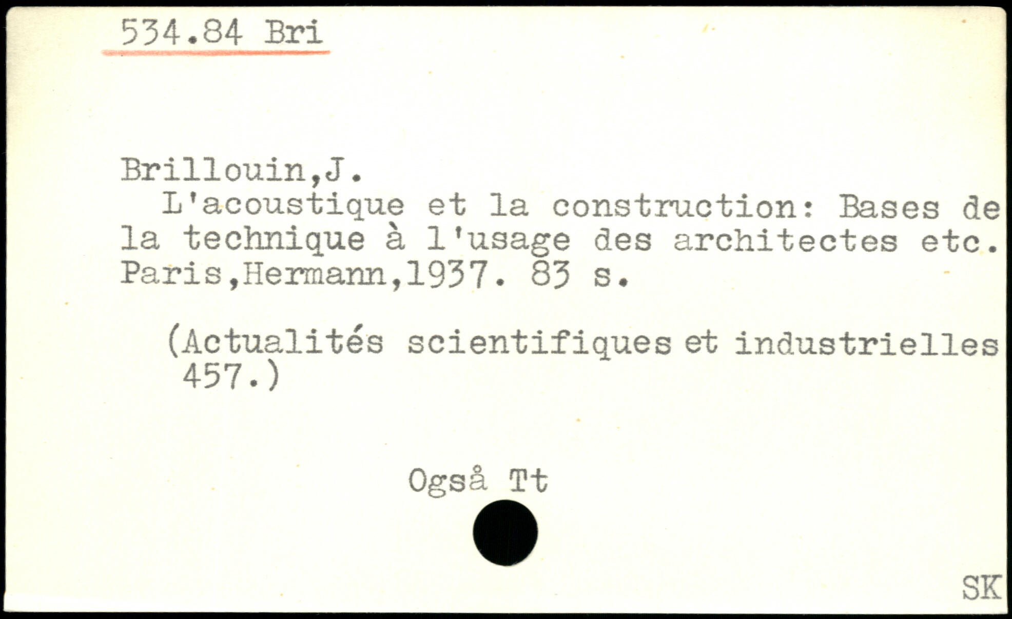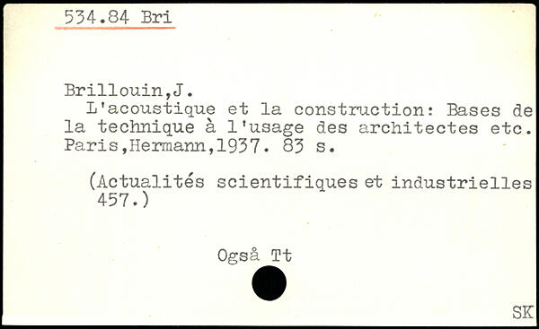 L'acoustique et la construction: Bases de la technique à l’usage des architectes etc.