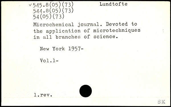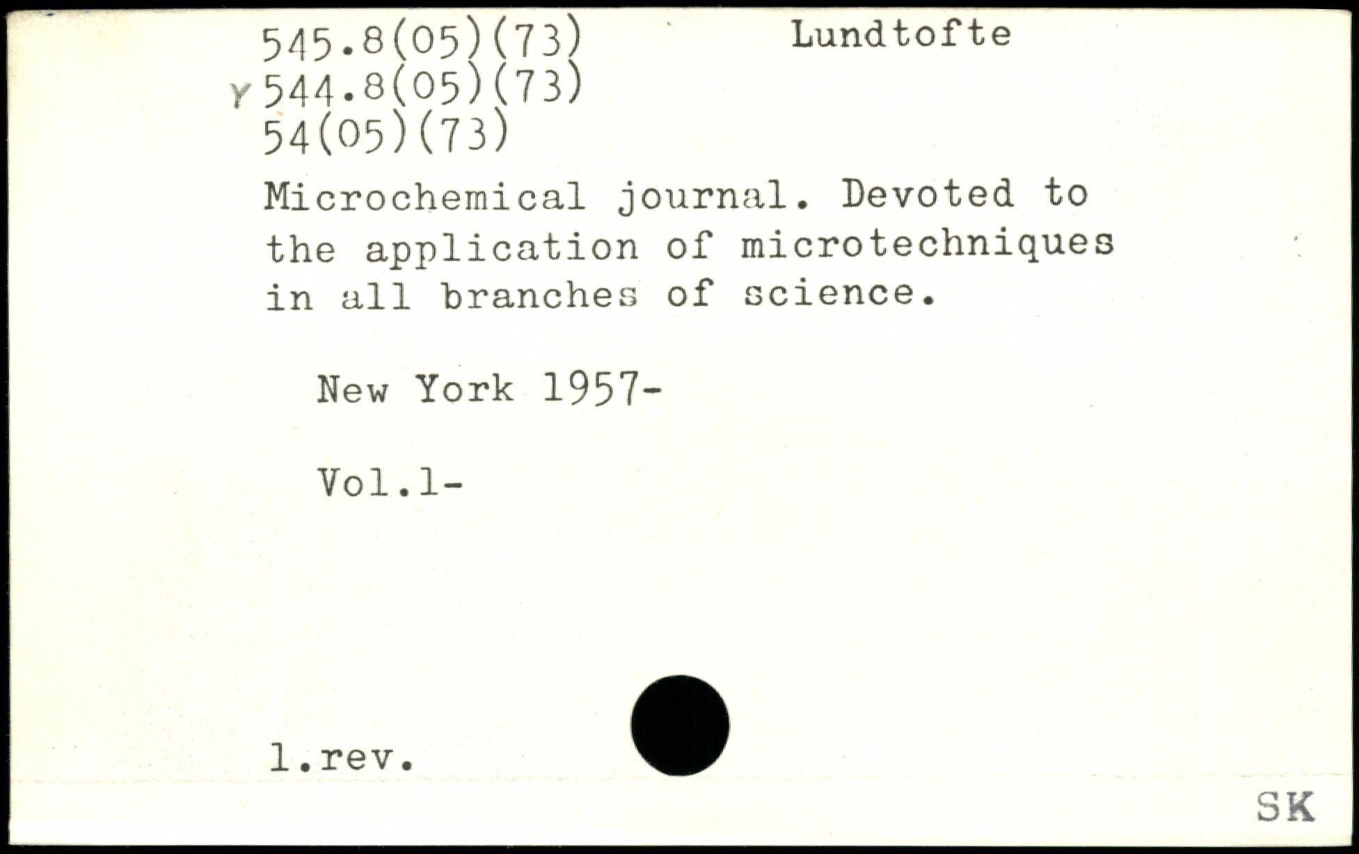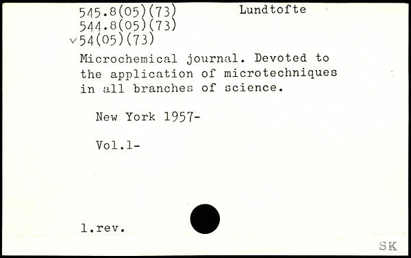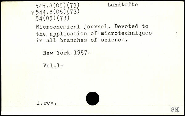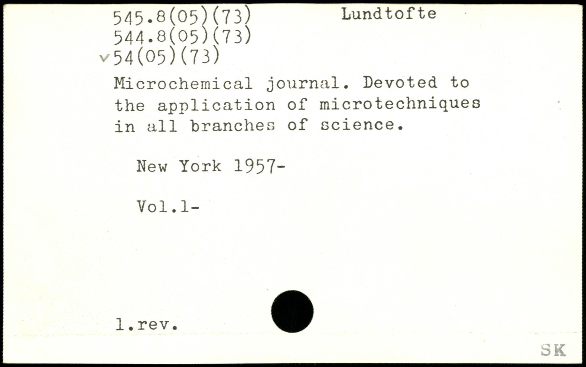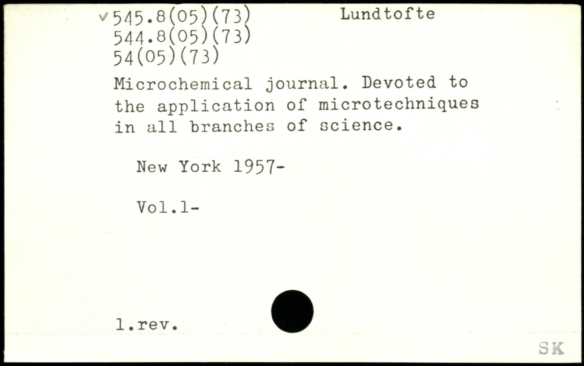 Microchemical journal. Devoted to the application of microtechniques in all branches of science.